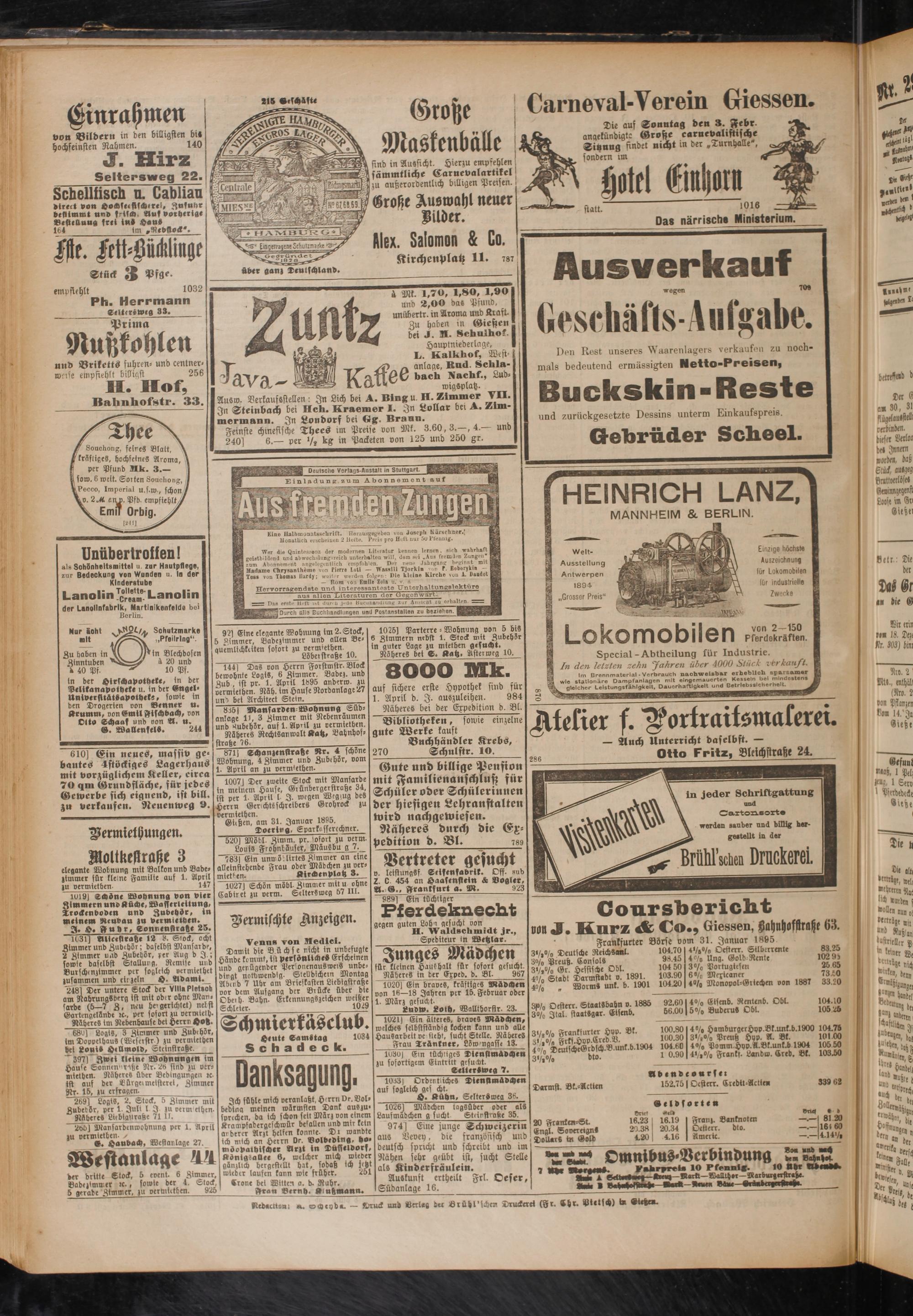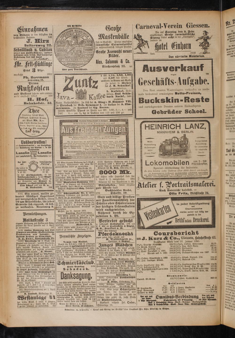 Güßen, am 31. Januar 1895.