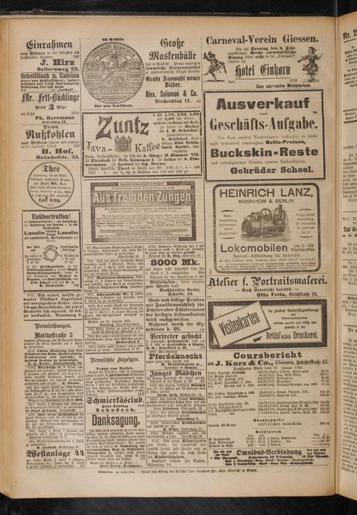 Ausw. Verkaufsstellen : In Lich bei A. Bingu H. Zimmer VII. In Steinbach bei Hch. Kraemer I. In Lollar bei A. Zimmermann. In Londorf bei Gg. Brann. .