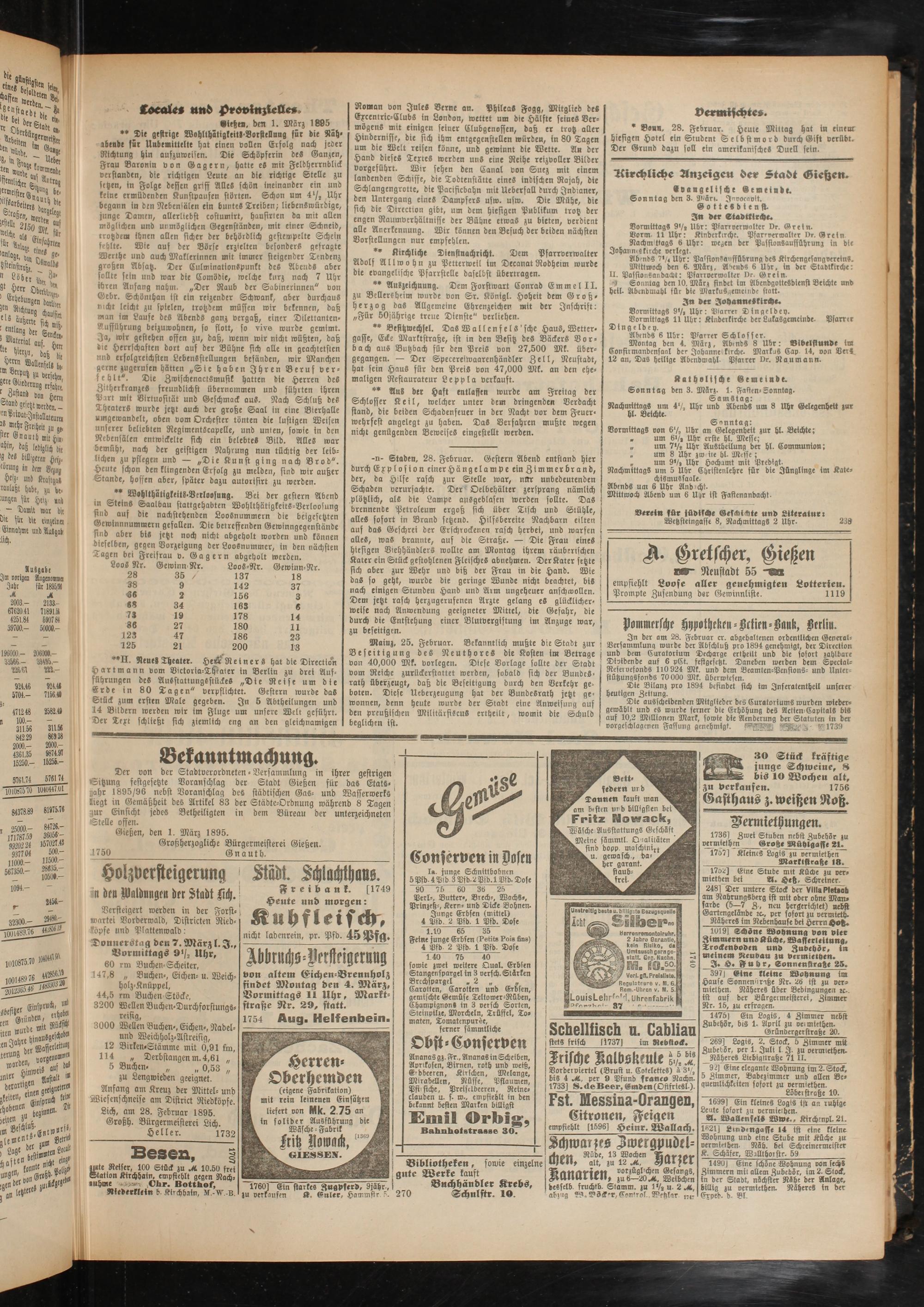 Der von der Stadtverordneten-Versammlung in ihrer gestrigen Sitzung festgesetzte Voranschlag der Stadt Gießen für das EtalS- ßahr 1895/96 nebst Voranschlag des städtischen Gas- und Wafferwerks Siegt in Gemäßheit des Artikel 83 der Städte-Ordnung während 8 Tagen ,ur Einsicht jedes Betheiligten in dem Bureau der unterzeichneten Stelle offen.