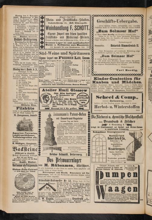 Allen werthen Gästen, insbesondere dem reisenden Publikum theile ich hierdurch mit, dass ich meinen Gasthof „Zum Solmser Hof“ an Herrn Carl Roedig aus Siegen verkauft habe.