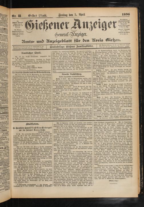 Alle Annoncen-Bureaux deS In- und Auslandes nehm« Anzeigen für den „Gießener Anzeiger" entgegen.