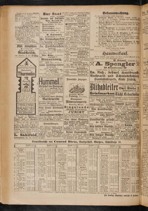 2) Joseph Weinert in Gießen betreibt daselbst seit 15. Ugj 1892 Buchdruckerei und Papierhandlung unter der Finrz I. Weinert.