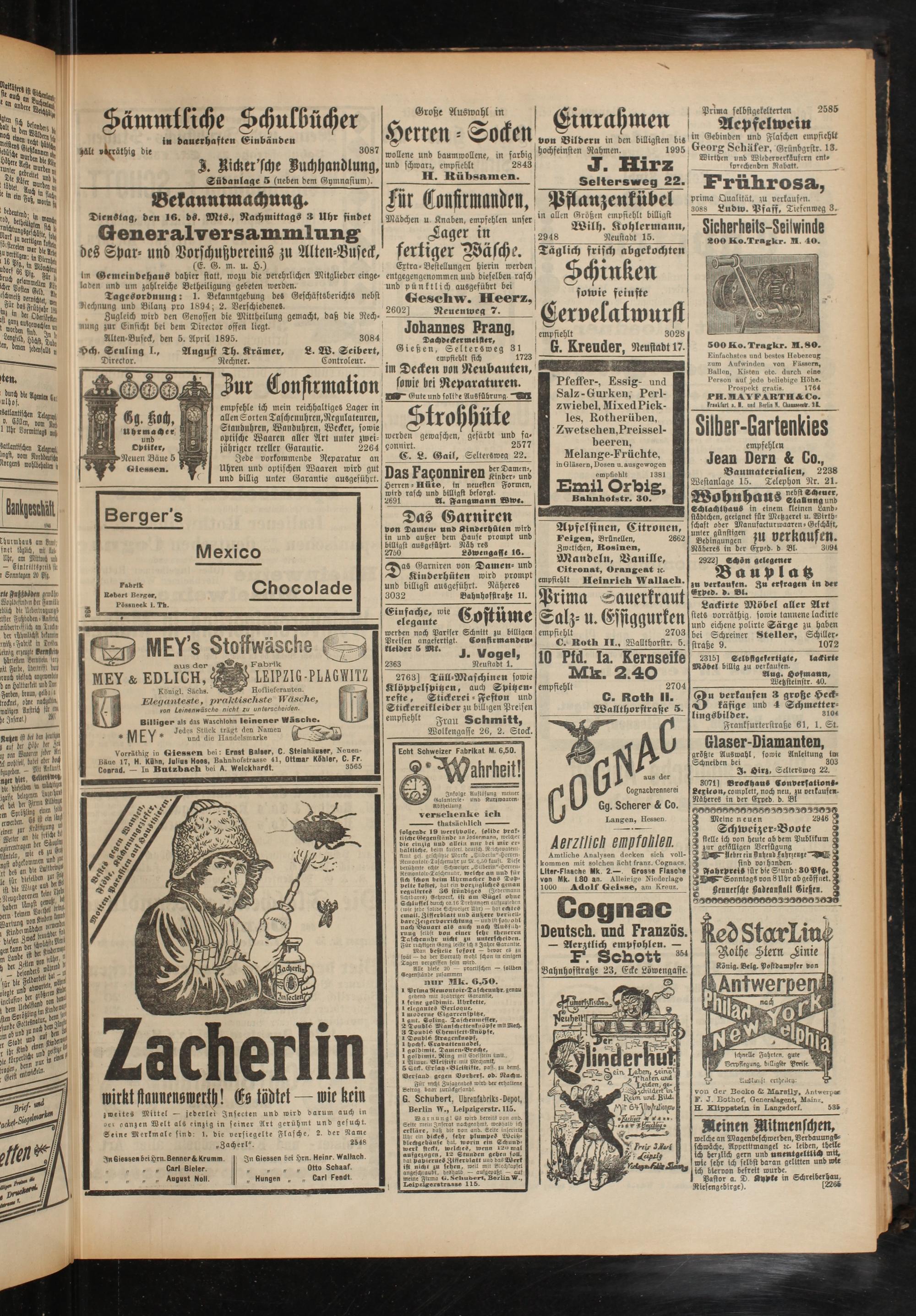Vorräthig in Giessen bei: Ernst Balser, C. Steinhäuser, Neuen- Bäue 17, H. Kühn, Julius Hoos, Bahnhofstrasse 41, Ottmar Köhler, C. Fr. Conrad. — In Butzbach bei A. Welckhardt. 3565