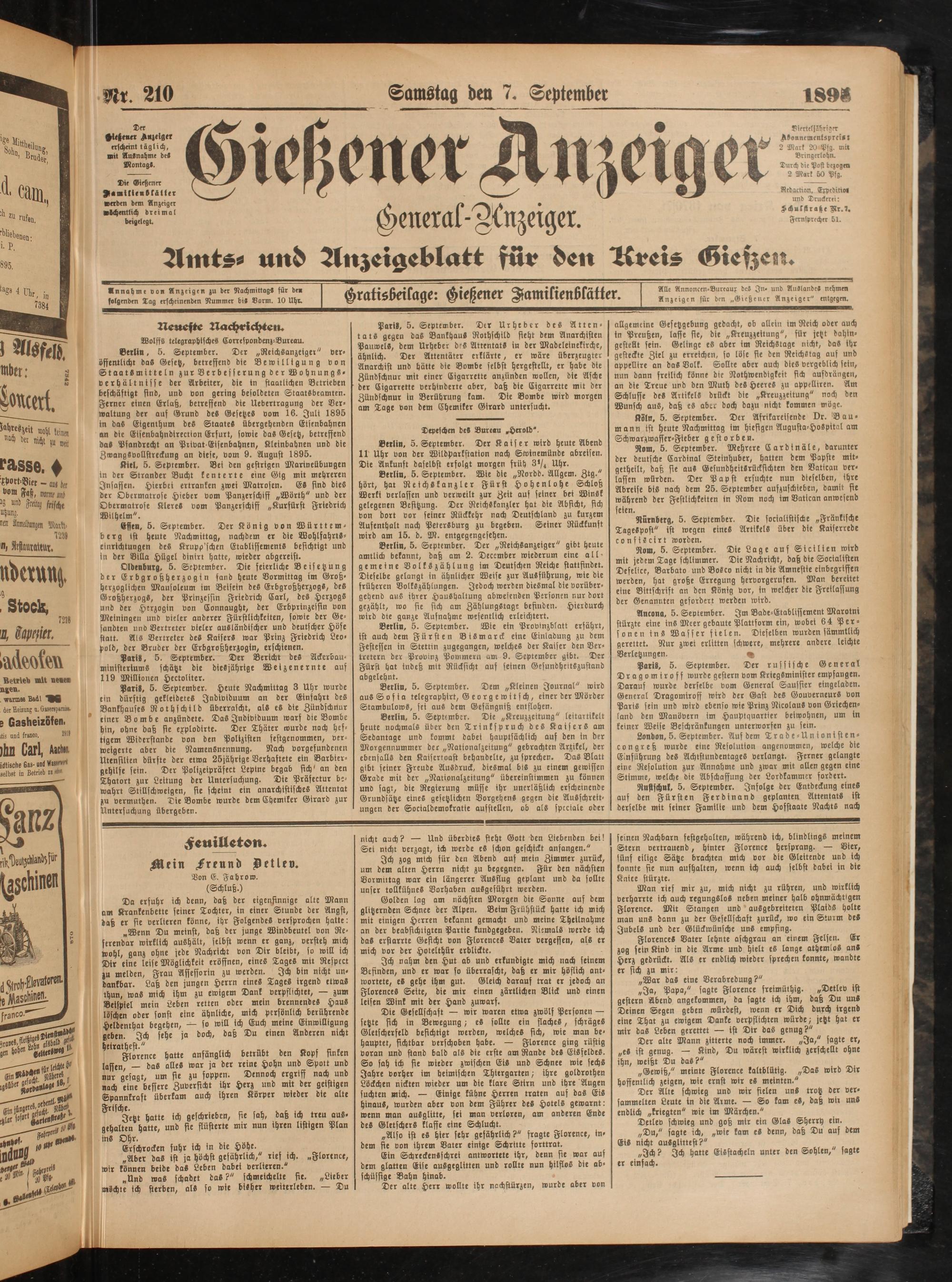 Alle Annoncen-Bureaux de» In» und AuSlande» nehmen Anzeigen für den „Gießener Anzeiger" entgegen.
