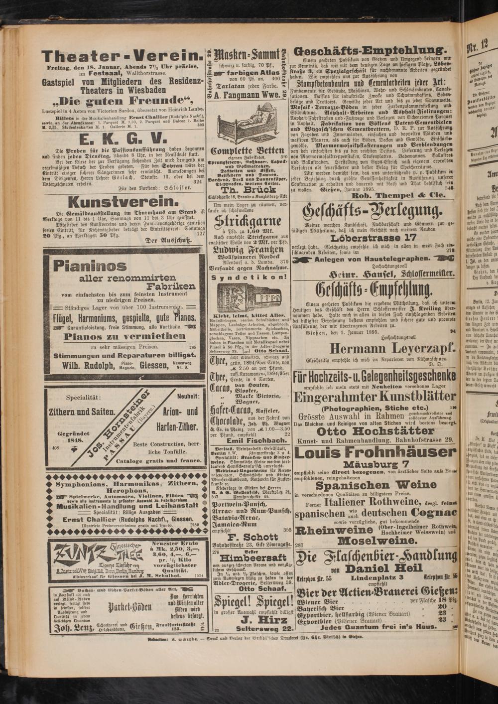 Wir werden bemüht fein, das uns unterstützende p. p. Publikum in jeder Beziehung durch größte Gewissenhaftigkeit in Ausführung unserer Construclion zu erhalten und dauernd mit Rath und That behilflich sei» zu wollen. Gießen, Januar 1895.