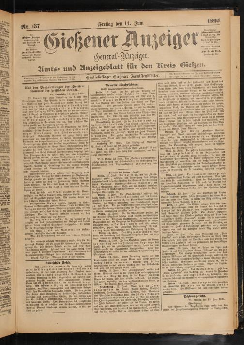 Die Gießener Aamikienbtälter werden dem Anzeiger wöchentlich dreimal beigelegt.