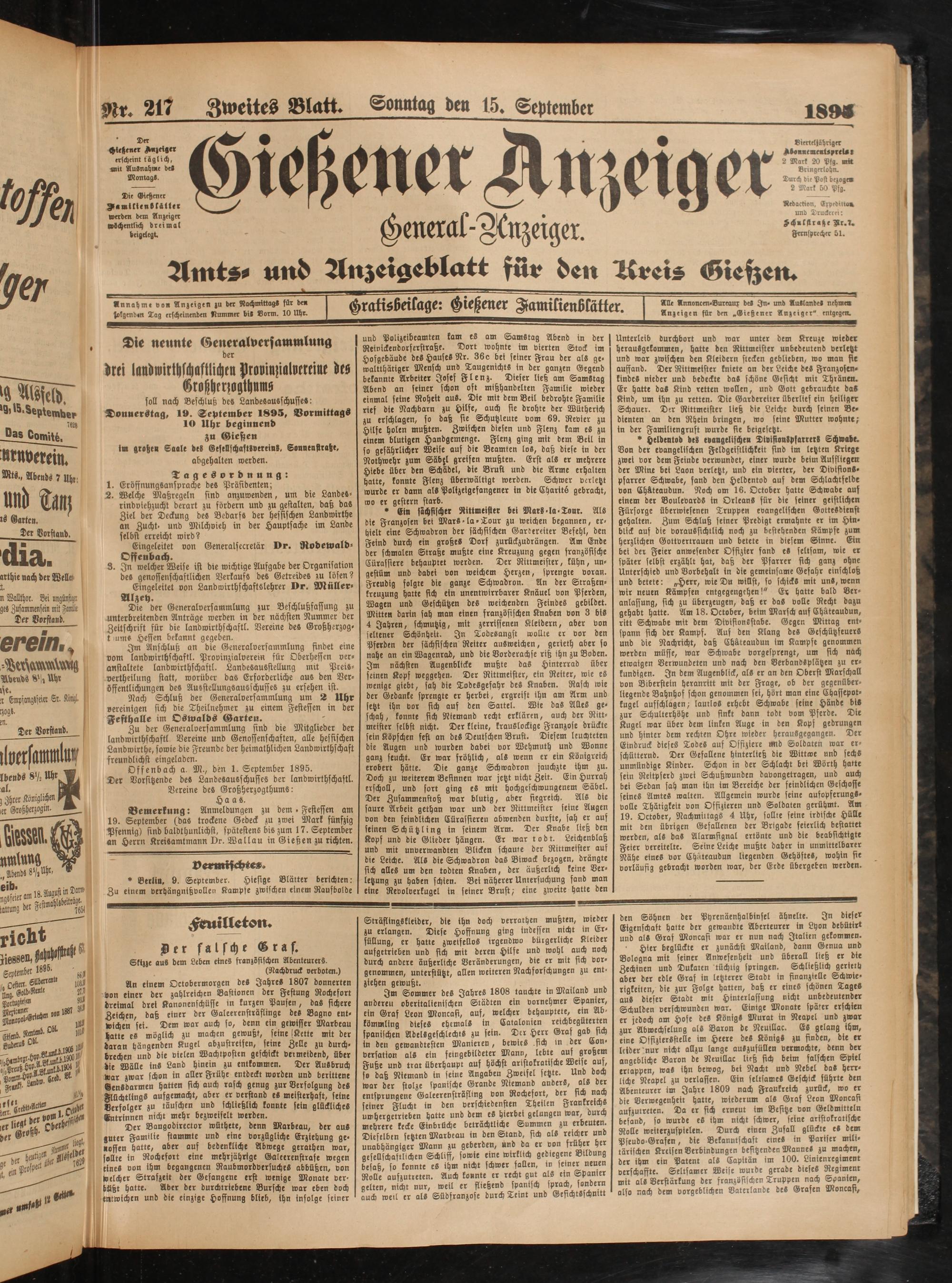 Donnerstag, 19. September 1895, Vormittags IO Uhr beginnend zu Gießen