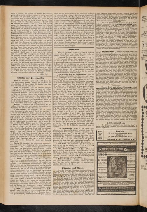 A Mainz, 13. November. Mit Rücksicht aus die Volks» zählung finden hier die ErgänzungSwahlen zu der Stadtverordnetenversammlung erst den 5. Decemder statt. — Der HauSetnsturz am verflossenen SamStag hat zur Folge