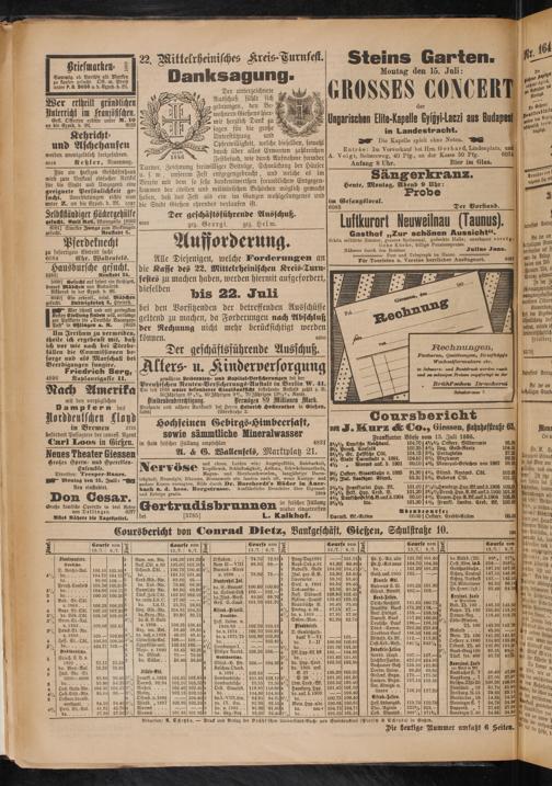 Coursbericht von Conrad Dietz, Bankgeschäft, Gießen, Schulstraße 10