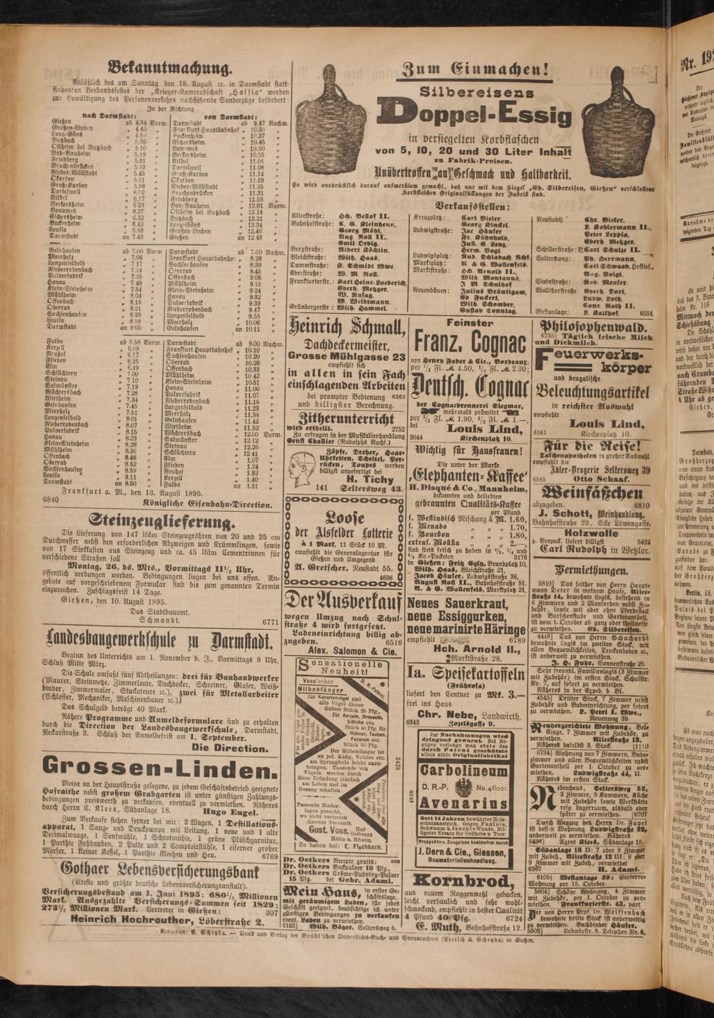 0 empfiehlt die Generalagentur für * Gießen und Umgegend v ö A. Gretscher, Neustadt 55. 0