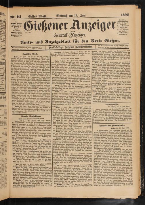 Dir Gießener MnmilienVtLtter werde» dem Anzeiger wöchentlich dreimal beigelegt.