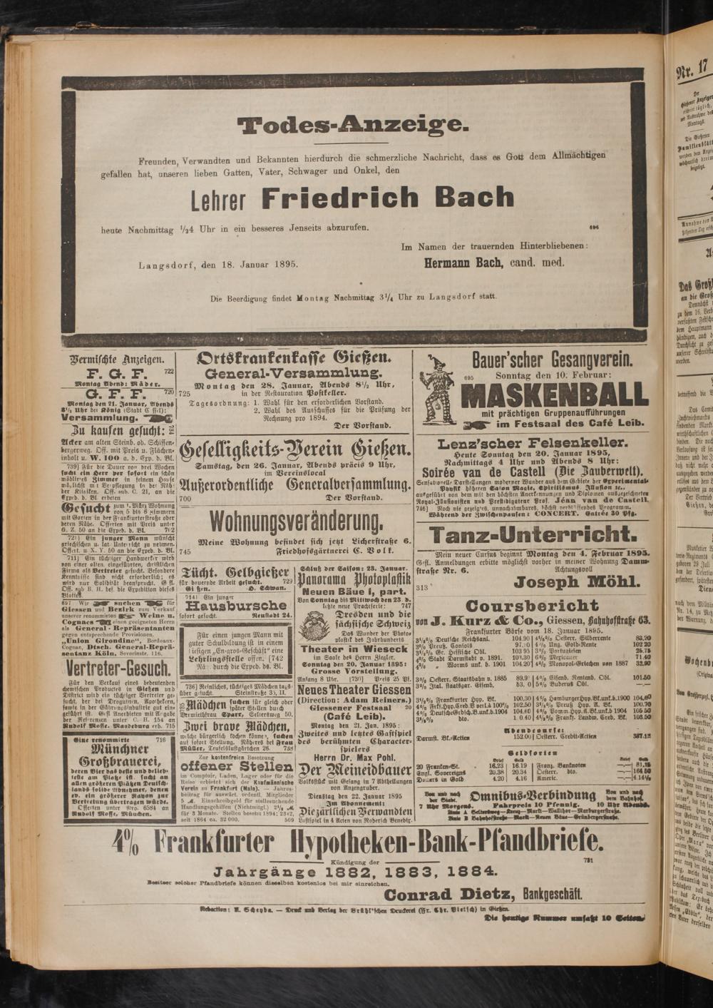 Dienstag den 22. Januar 1895 Im Abonnement: