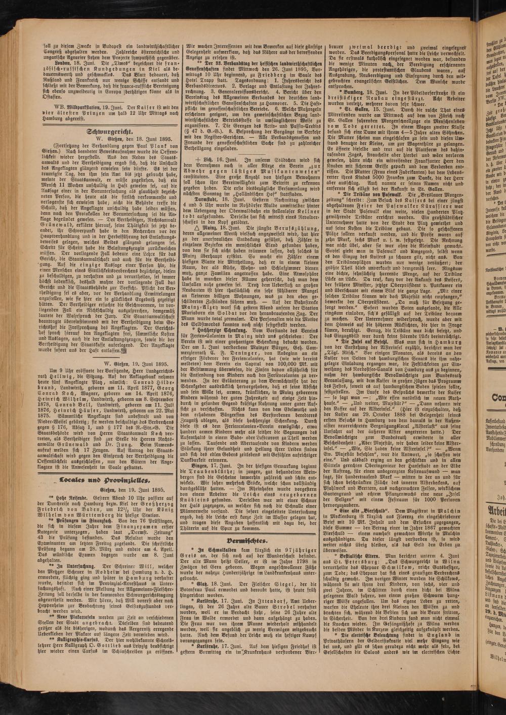 ** Der 88. BerbandStag der hessischen laudwirthschaftlicheu Geuoffeuschasteu findet Mittwoch den 26. Juni 1895, Vormittags 10 Uhr beginnend, zu Friedberg im Saale des Hotel Trapp statt. Tagesordnung: 1. Jahresbericht des VerbandSdirectorS. 2. Vorlage und Entlastung der Jahresrechnung. 3. GeneralrevifionSbertcht. 4. Bericht über den VereinStag des Allgemeinen Verbandes der deutschen land- wirthschastlichen Genossenschaften zu Hannover. 5. Die Haftpflicht im genoffenschaftlichen Betriebe. 6. Welche Maßregeln erscheinen geeignet, um den gemeinschaftlichen Bezug land- wirthschaftlicher Betriebsstoffe in umfänglicherer Weise zu organisiren. 7. Die Grenzen deS Activ- und Passiv-Credits (§ 47 d. G.-G.). 8. Besprechung der Vorgänge im Verkehr mit den Register-Gerichten. — Alle Verbandsgenoffen und Freunde der genoffenschaftlichen Sache sind zu zahlreicher Betheiligung eingeladen.