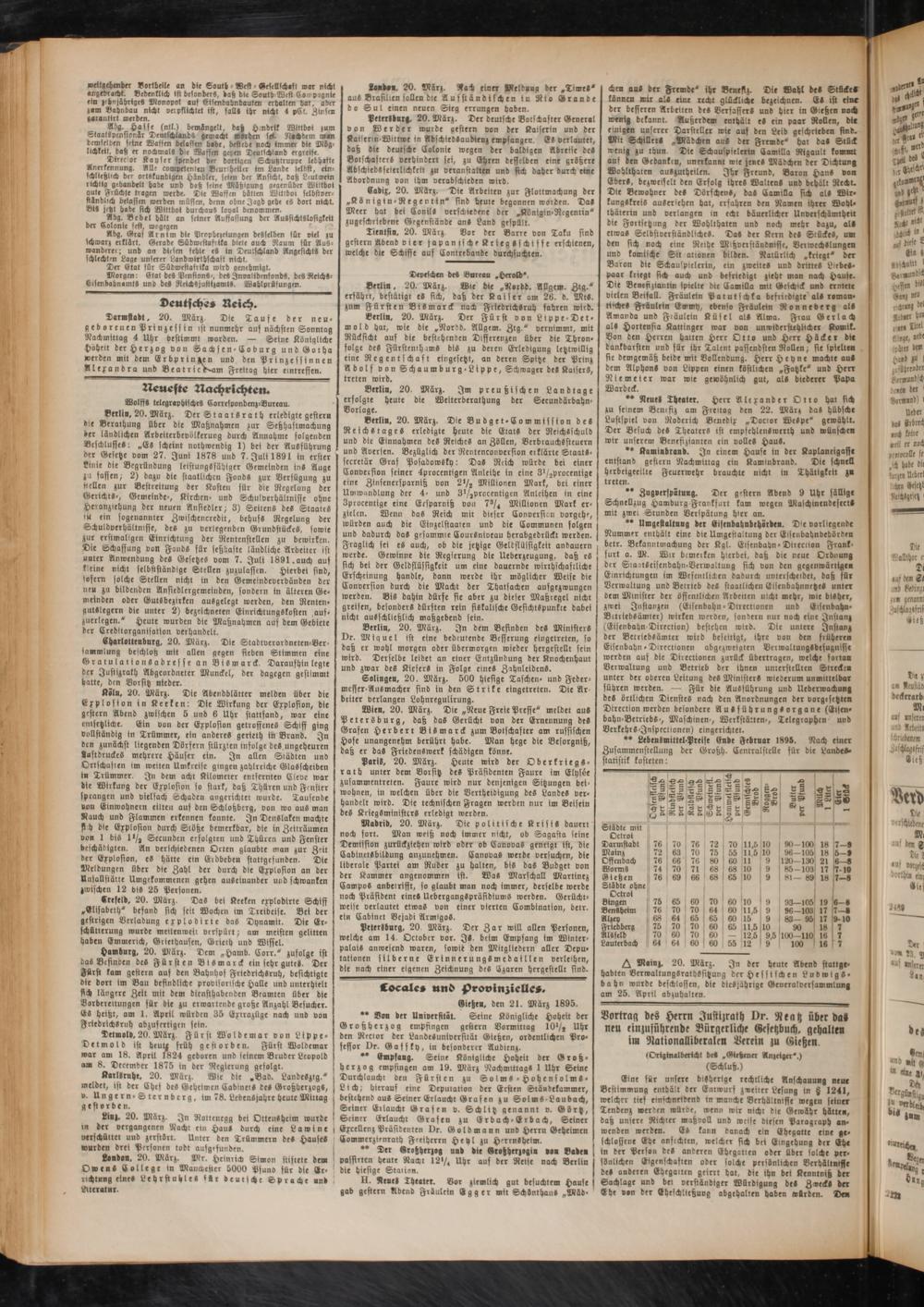 Darmstadt, 20. März Die Taufe der neu* geborenen Prinzessin ,st nunmehr auf nächsten Sonntag Nachmittag 4 Uhr bestimmt worden. — Seine Königliche Hoheit derHerzog von Sachsen-Coburg und Gotha werden mit dem Erbprinzen und den Prinzessinnen Alexandra und BeatricV-am Freitag hier eintreffen.