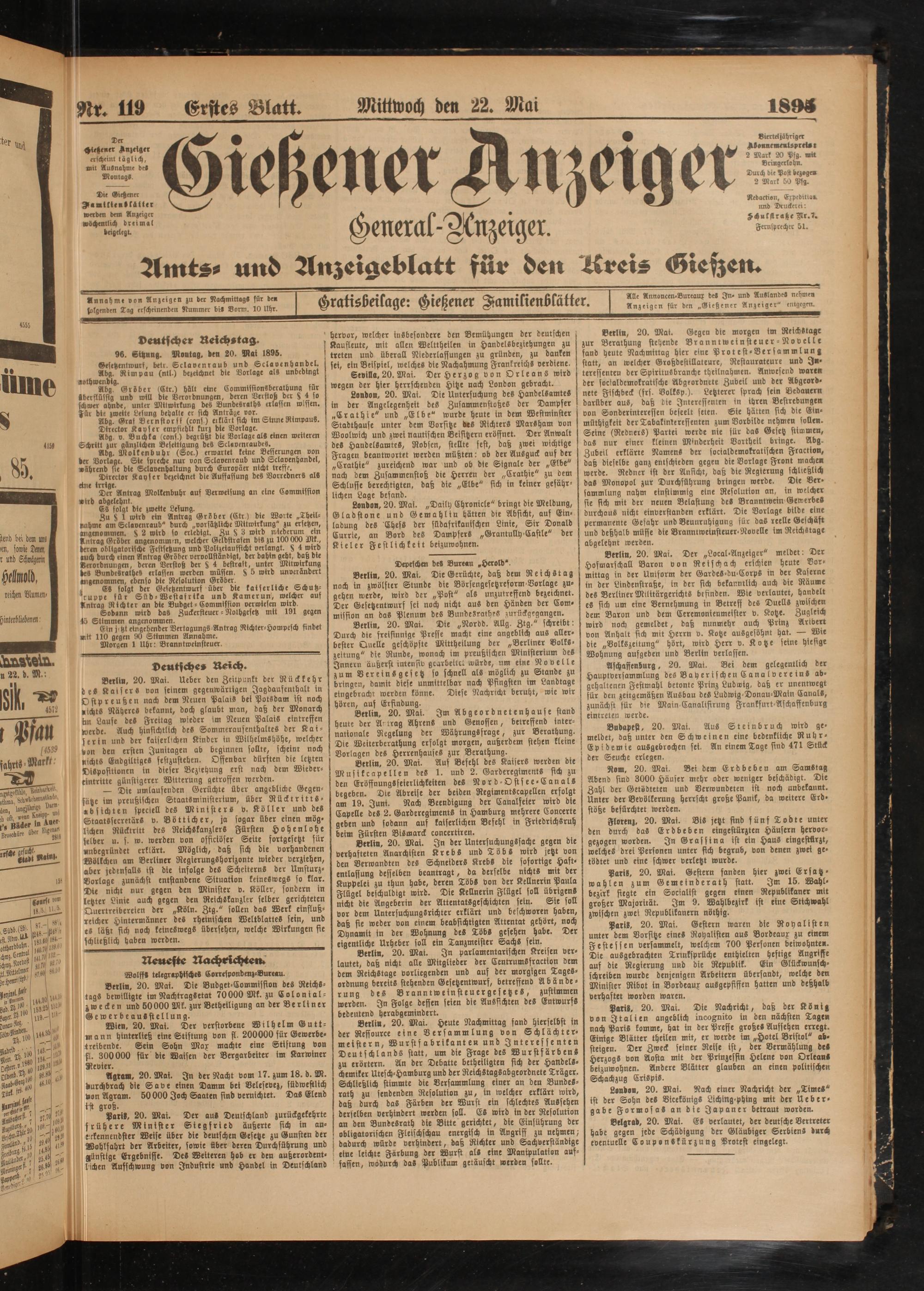 Alle Lnnoncen-Bureaux befl In« und Auslandes nehmen Anzeigen für den „Gießener Anzeiger" entgegen.