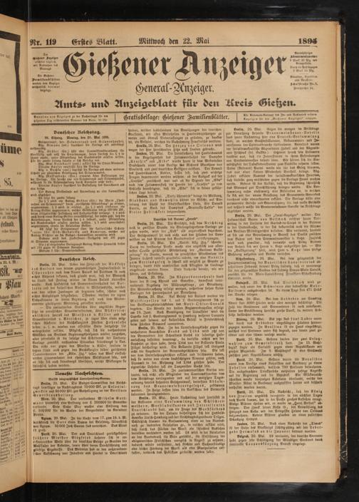 Die Gießmer AnmtlienßlLtter werden dem Anzeiger wüchentlich dreimal beigelegt.