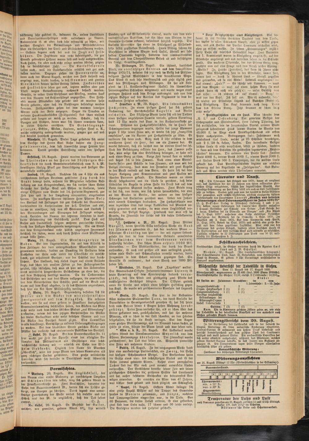 «m 21. August Mittags 12 Uhr (Wetterhäuschen in ber Südanlage).