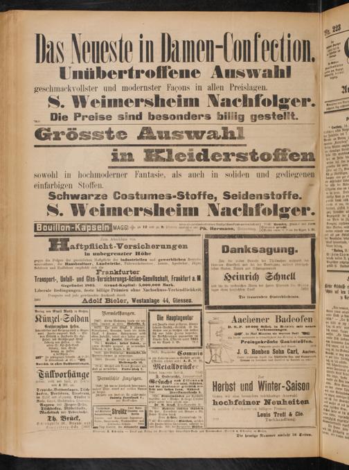 J. G. Hauben Sohn Carl, Aachen. Unter Anderem durch das Städtische Gas- und Wasserwerk Giessen za beziehen und daselbst in Betrieb za seh -.
