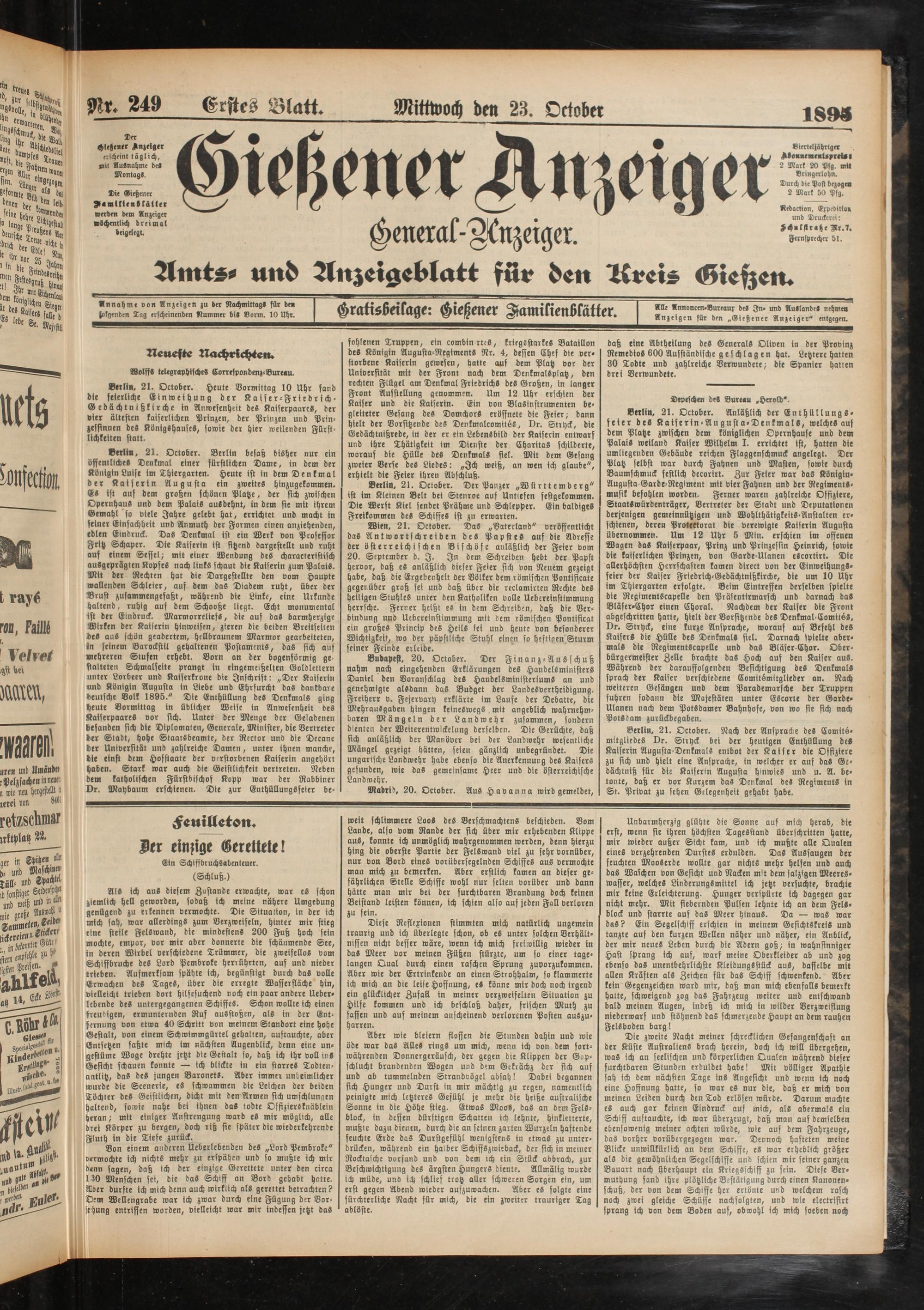 Erstes Blatt. Mittwoch den 23. October