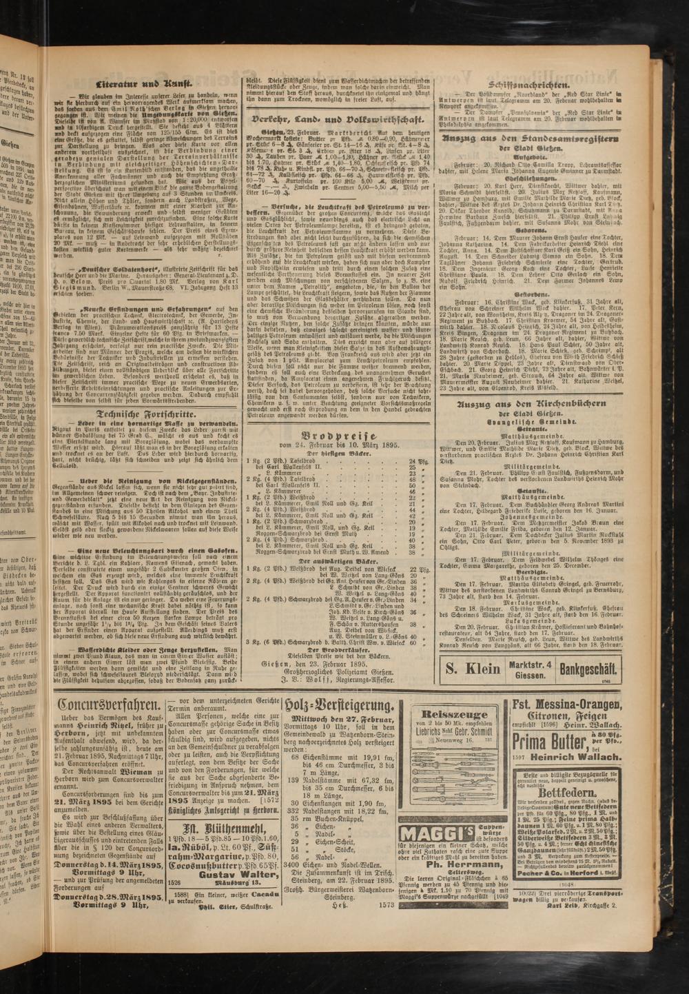 Brodpreise vom 24. Februar bis 10. März 1895. Der hiesige« Bäcker.