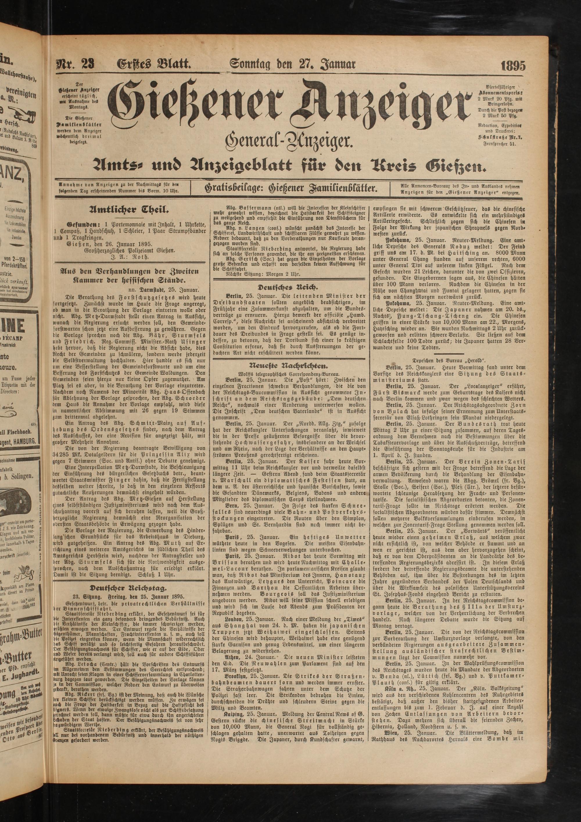 23. Sitzung. Freitag, den 25. Januar 1895.