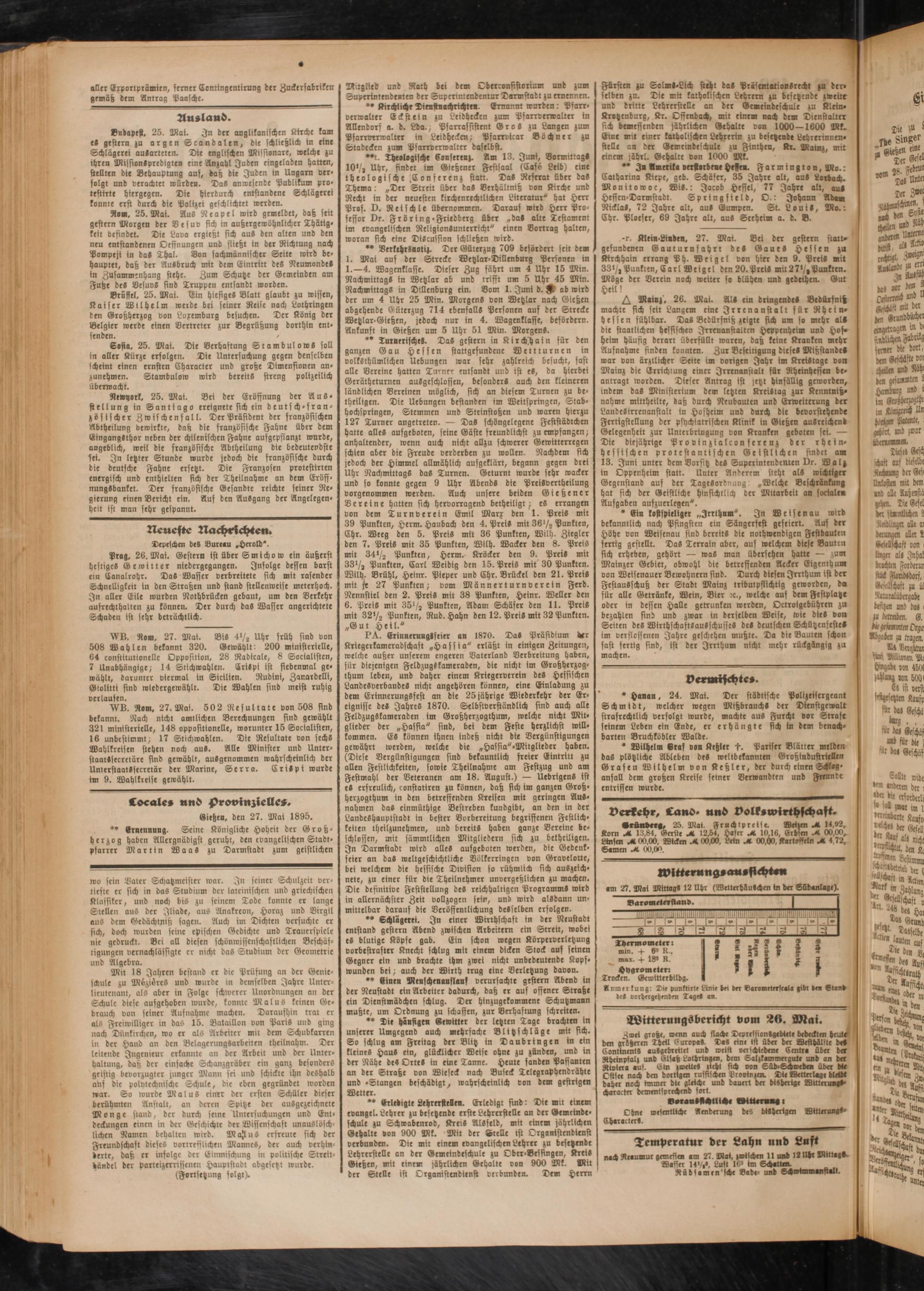 Rom, 25. Mai. AuS Neapel wird gemeldet, daß seit gestern Morgen der Vesuv sich in außergewöhnlicher Thätig« feit befindet. Die Lava ergießt fich aus den alten und den neu entstandenen Oefinungen und fließt in der Richtung nach Pompeji in baß Thal. Bon fachmännischer Seite wird behauptet, daß der Ausbruch mit dem Eintritt deß Neumondes in Zusammenhang stehe. Zum Schutze der Gemeinden am Fuße deß Vesuvß find Truppen entsandt worden.