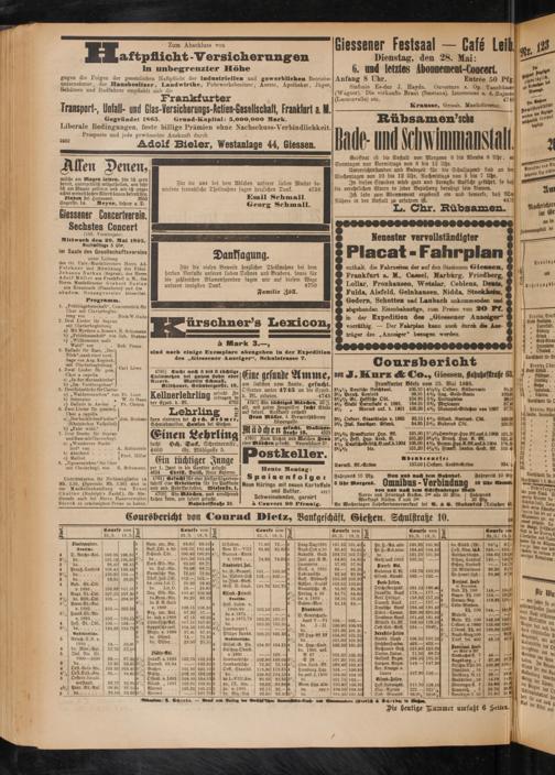 Coursbericht von Conrad »letz, Bankgeschäft, Gießen Schulstraße 10