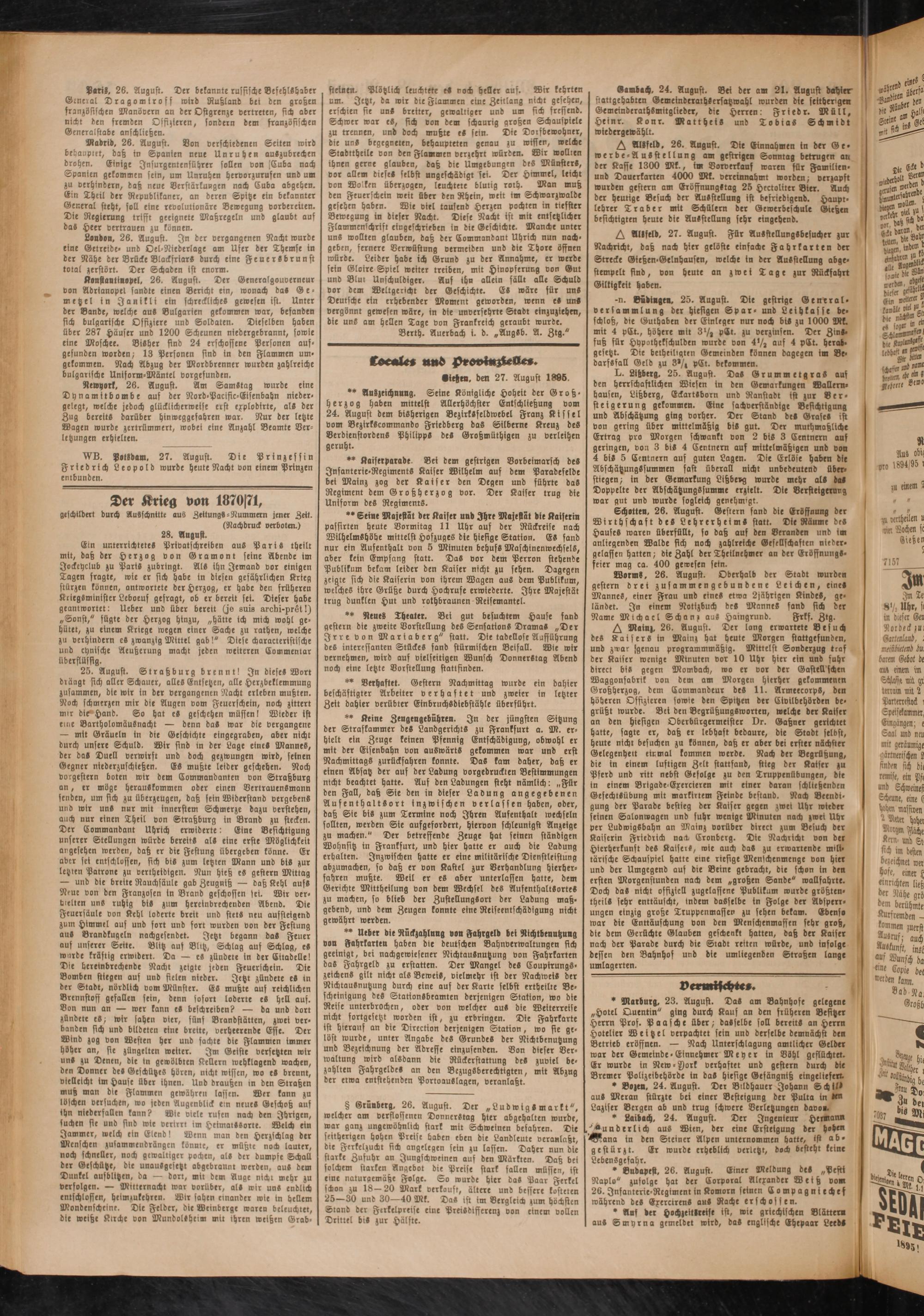 A Alsfeld, 27. August. Für Ausstellungsbesucher zur Nachricht, daß nach hier gelöste einfache Fahrkarten der Strecke Gießen-Gelnhausen, welche in der Ausstellung abgestempelt find, von heute an zwei Tage zur Rückfahrt Giltigkeit haben.