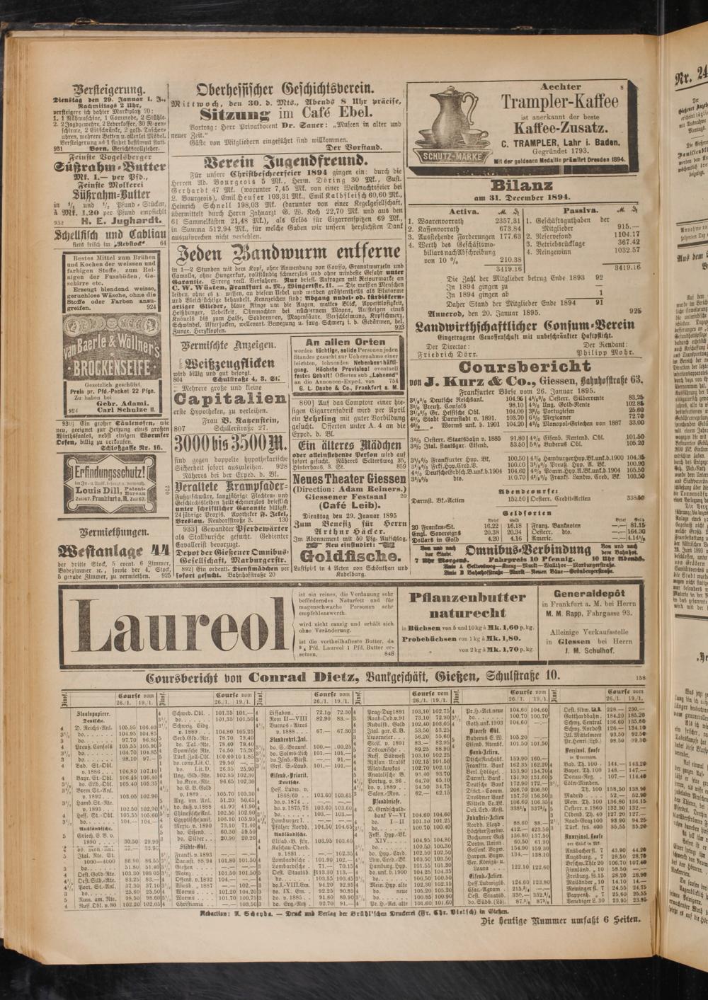 Frankfurter Börse vom 26. Januar 1895.