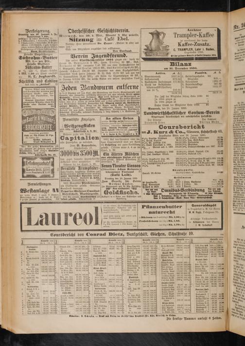 Coursbericht von Conrad Dietz, Bankgeschäft, Gießen, Schulstraße 10