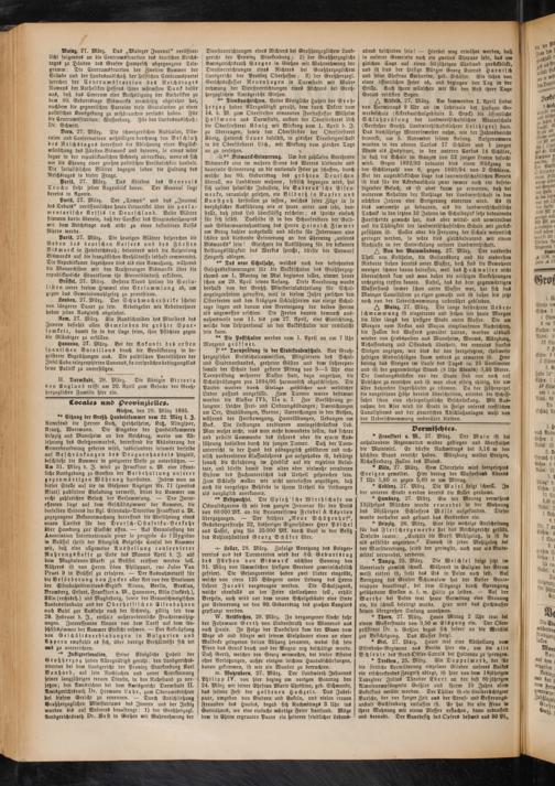 Paris, 27. März. Die heutigen Blätter besprechen bie Reben beß beutschen Kaisers unb beß Fürsten BiSmarck in FriedrichSruh- besonders wirb bie Anspielung BiSmarckß auf bie französischen Verhältnisse lebhaft commentirt Die Republikaner bezeichnen dies als eine Anmaßung, während bie Monarchisten mit ben Aeußerungen Bismarcks über bie republikanische ©taatßform ihr Einverstänbniß erklären.