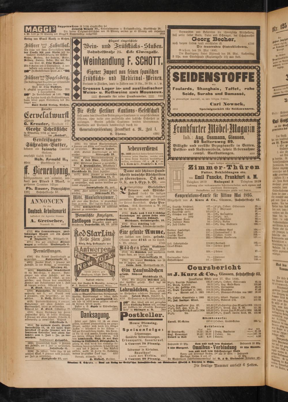 ANNONCEN für den Deutsch. Arbeitsmarkt befördert die Agentur Giessen A. tiretscher, Neustadt 56. 4657