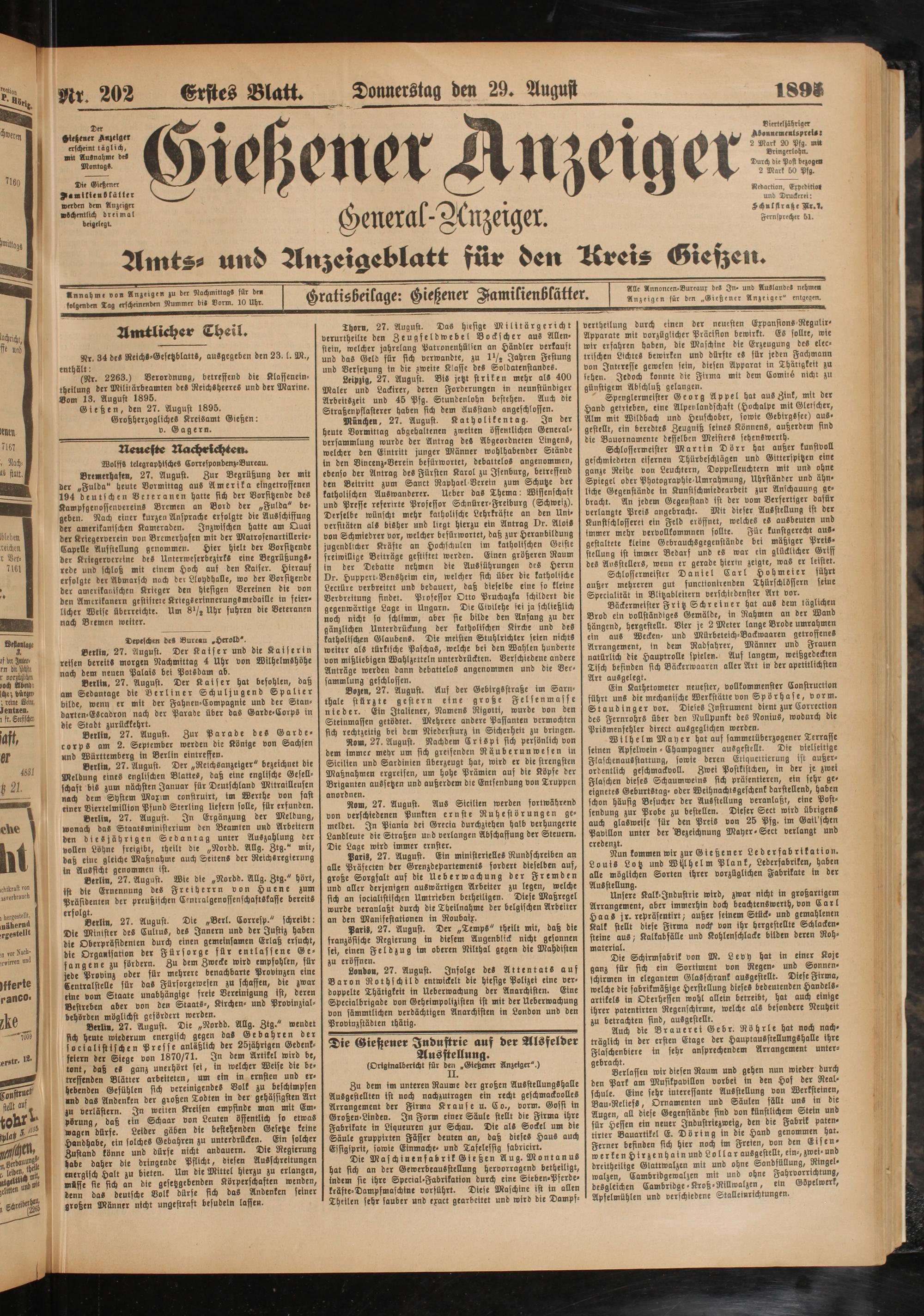 Alle Lnnoncen.Bureaux deS In- und Auslandes nehme» Anzeigen für den „Gießener Anzeiger» entgegen.