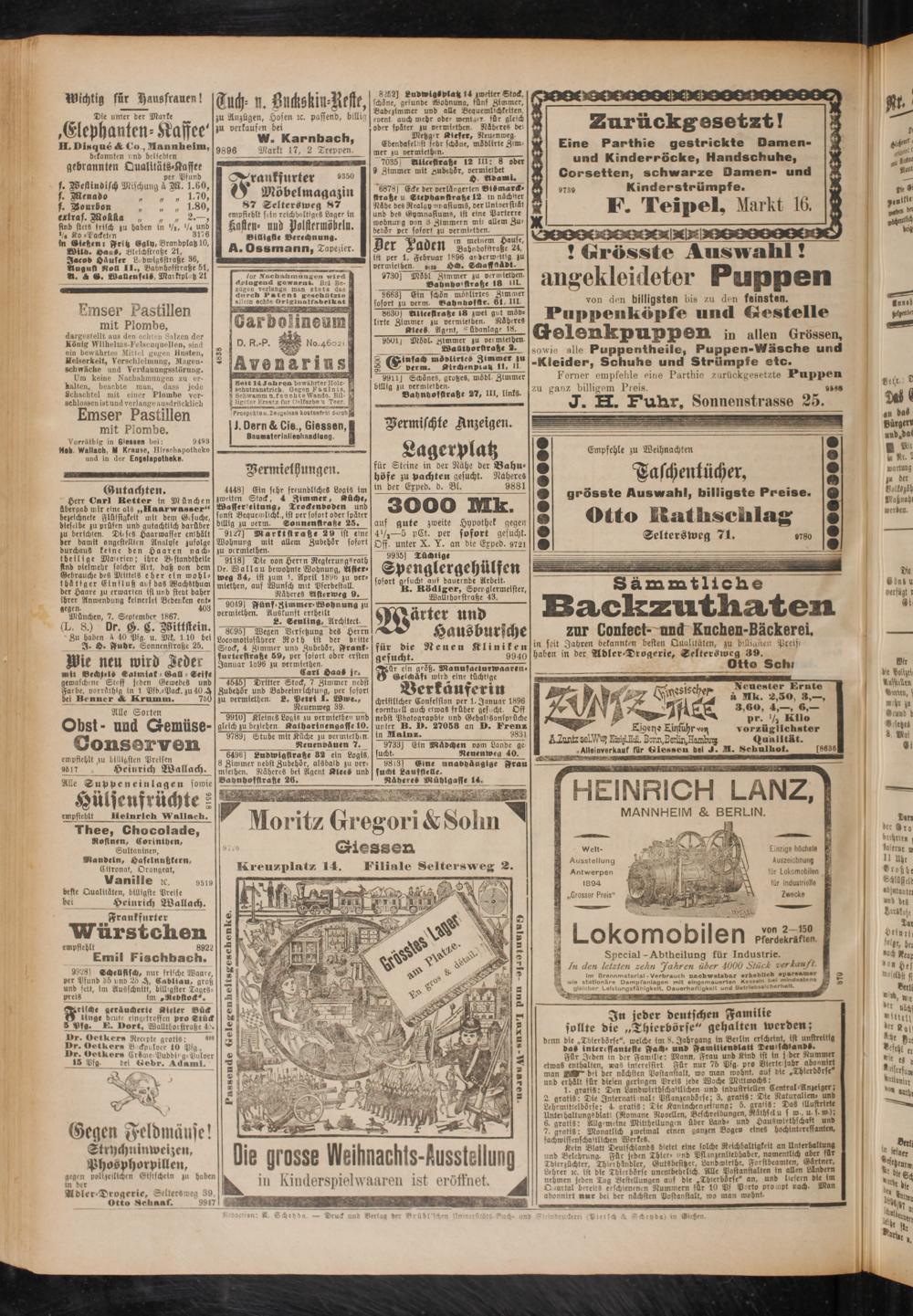 Vermischte Anzeigen.