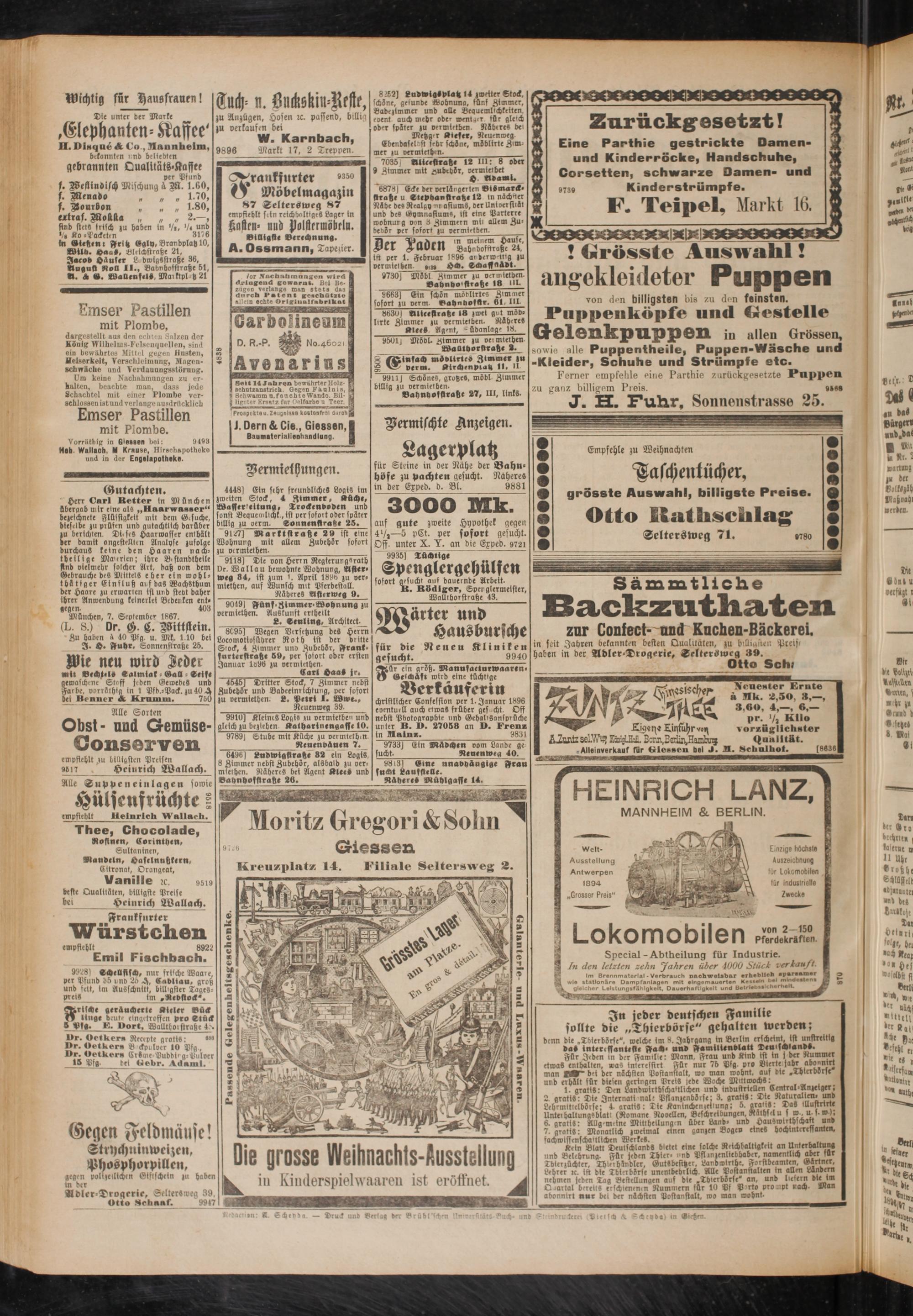 Heb Wallach, M Krause, Hirechapotheke und in der Engelapotheke.