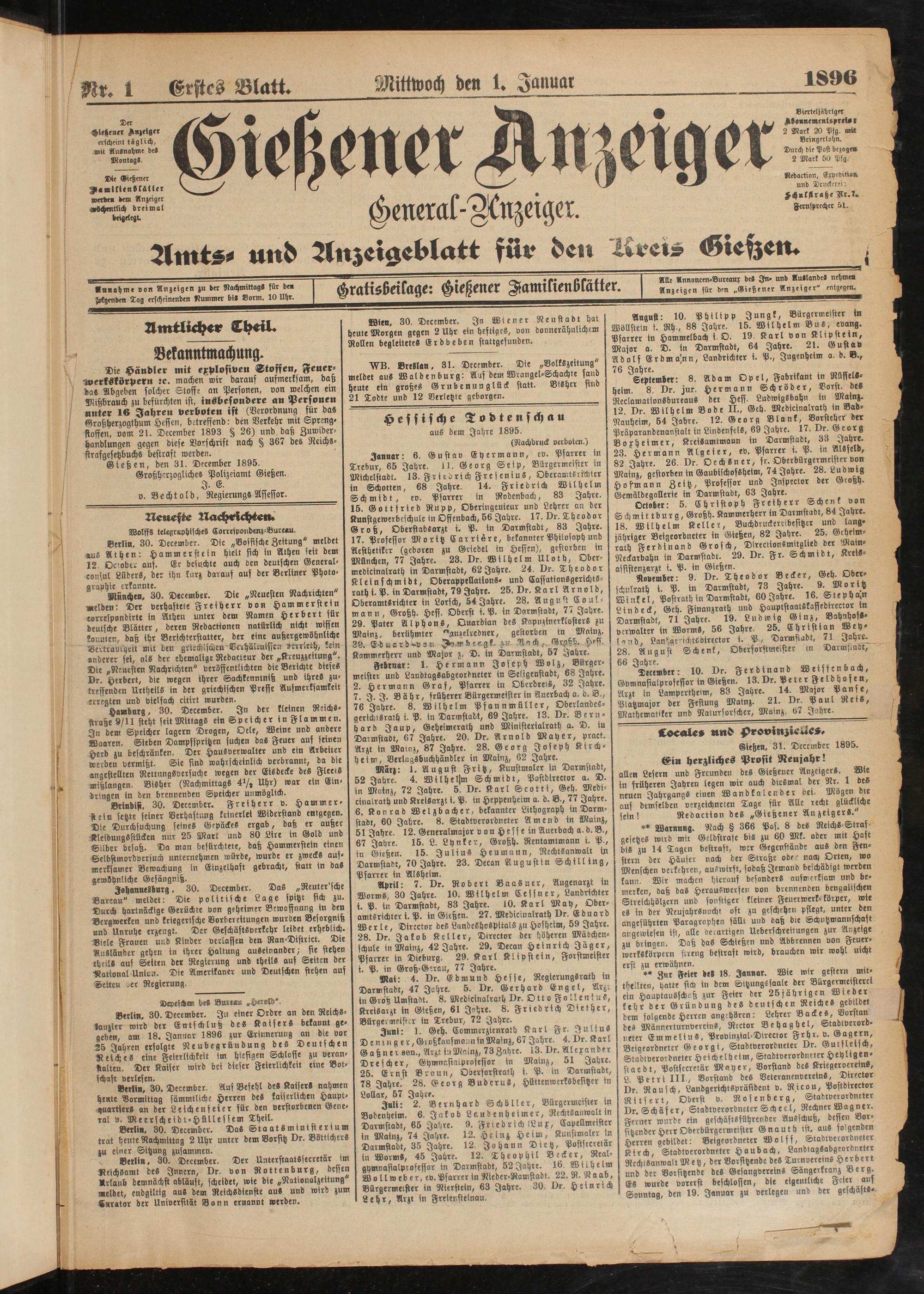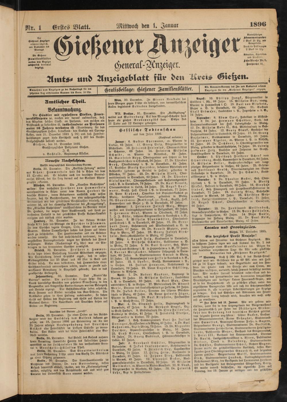 Gießen, den 31. December 1895.