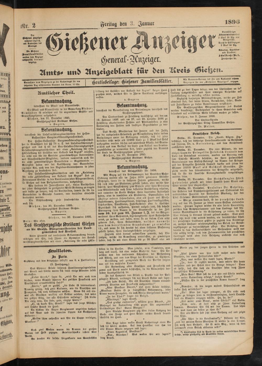 Die UnfallverhütungSvorschriften und die „Anleitung für erste .Hülfeletstuug vor Ankunft deS ArzteS" sind zu Jedermanns Einsicht in.den AmtSlocalen jeder Bürgermeisterei, in Gießen auf dem PolizeiamtSbureau, auSgehängt.