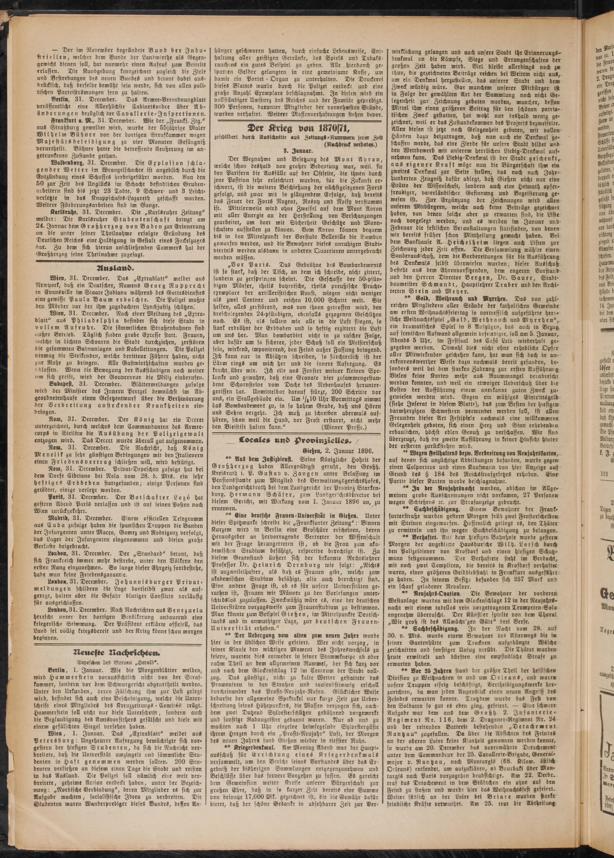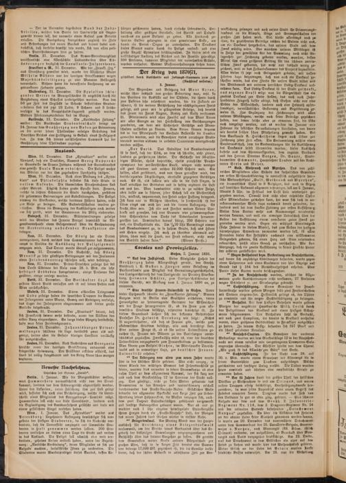 * ♦ Bor 25 Jahre, stand der größte Theil der hessische« Division zu Weihnachten in und um Orleans, und wäre» unsere Truppen eifrig beschäftigt, VertheidigungSwerke herzurichten, da man jeden Augenblick einen neuen Angriff de» Feindes erwarten konnte. Trotzdem wurde da» Fest von den Soldaten so gut eß eben ging, gefeiert. — Live schwere Aufgabe war dem auß dem Großh. 2 Infanterie - Regiment Nr. 116, dem 2. Dragoner-Regiment Nr. 24 und der reitenden Batterie bestehenden „Detache«ent Rantzau" zugefallen. Da über die Absichten de» Feinde» an der oberen Loire keine Klarheit gewonnen werden konnte, o wurde am 20. December daß vorerwähnte Detachement unter dem Eommandeur der 25. Eavallerie-Brigade, Generalmajor v. Rantzau, nach Montargis (68. Kilow. östlich Orleans) entsendet, um auszuklären, ob Bourbaki über Mon- targiß nach Pari» vorzugehen beabsichtige. Am 22. Decbr. traf daß Detachement in dem Städtchen ein ohne auf de« Feind zu stoßen und wurde hier daß Weihnachißsest gefeiert. Weiter südlich an der Loire bei Briare wurden starke feindliche Kräfte vermulhet. Am 25. trat die Abtheilung