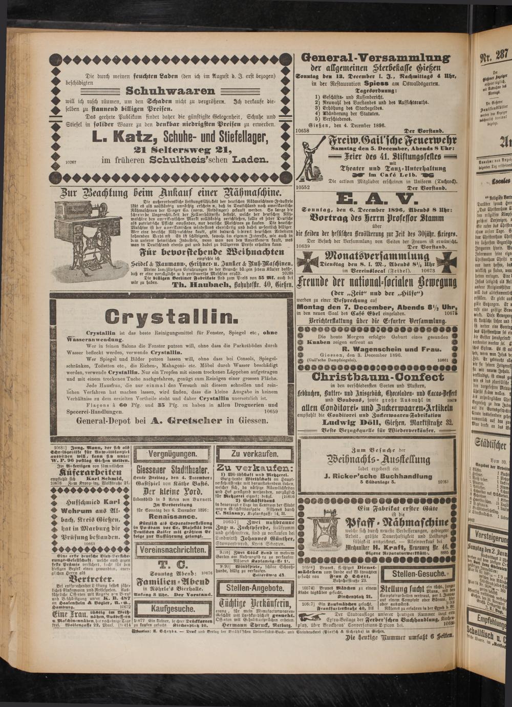 Sonntag, den 6. December 1896, Abends 8 Uhr:
