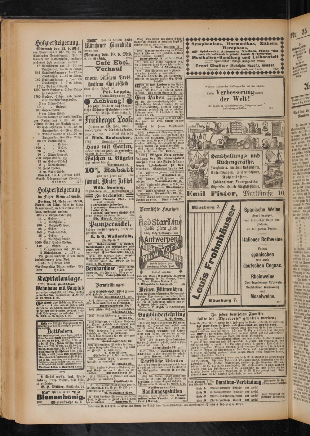 Lich, 7. Februar 1896. Grobherzogliche Bürgermeisterei Lich.