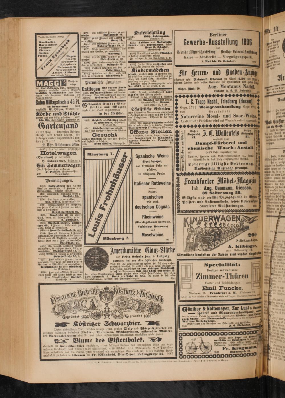 | Frankfurter Möbet-Magajin - Inh.: Ang. Ossmann, Giessen, 89 Seltersweg 89.