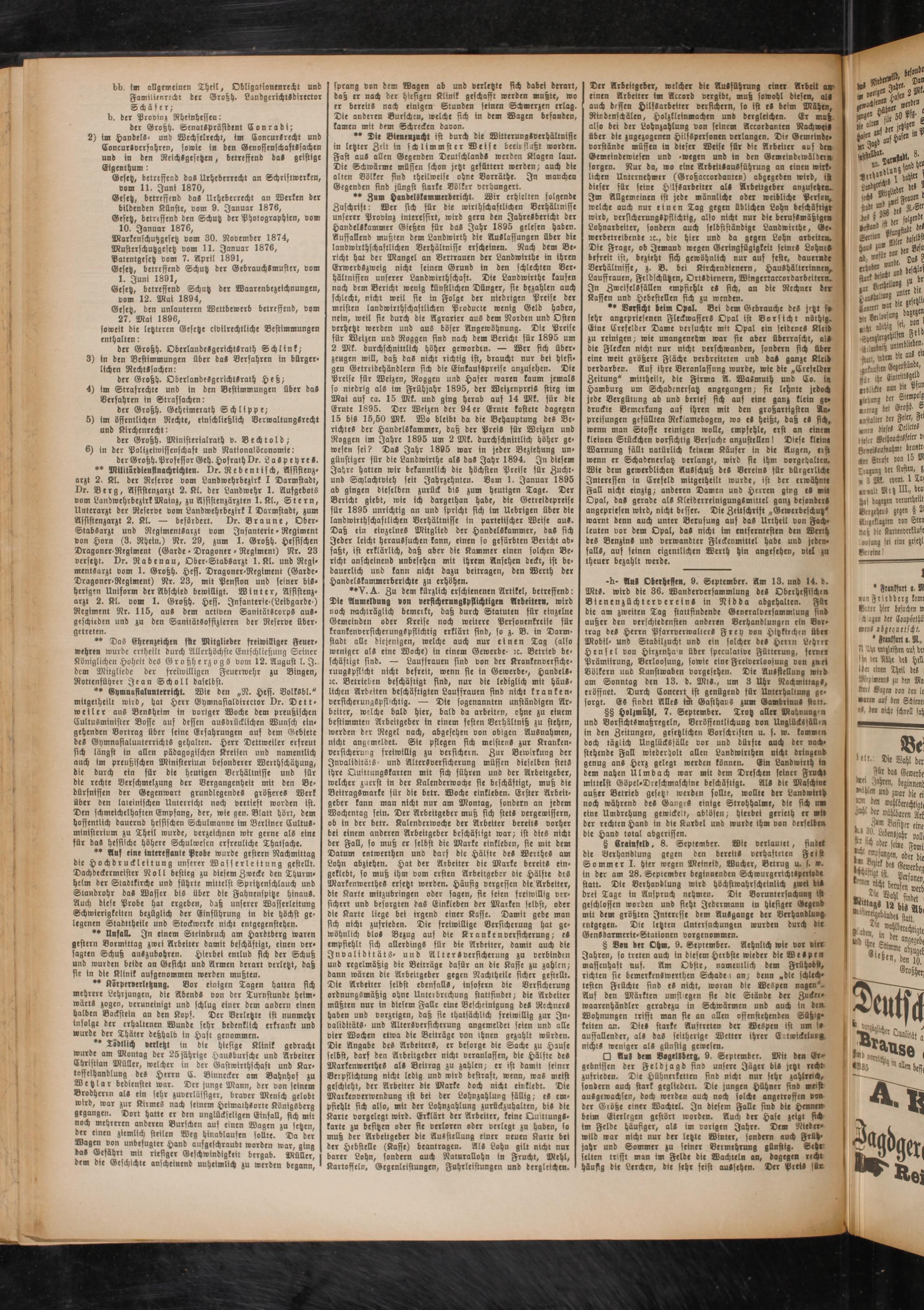 -h- Ans Oberhessen. 9. September. Am 13. und 14. d. MtS. wird die 36. Wanderversammlung de» Oberhessische» Bienenzüchtervereins in Nidda abgehalten. Für die am zweiten Tag stattfindende Generalversammlung sind außer den verschiedensten anderen Verhandlungen ein Vortrag deS Herrn PfarrverwalterS Frey von Hitzkirchrn übe« Mobil- und Stabilzucht und ein solcher des Herrn Lehre« Hensel von Hirzenhan über speculative Fütterung, ferne« Prämierung, Berloosung, sowie eine Freiverloosung von zwei Völkern und Kunstwaben vorgesehen. Die Ausstellung wirb am Sonntag den 13. d. MtS., um 3 Uhr Nachmittag», eröffnet. Durch Concert ist genügend für Unterhaltung gesorgt. ES findet AlleS im Gasthaus zum Gambrinu» fielt.