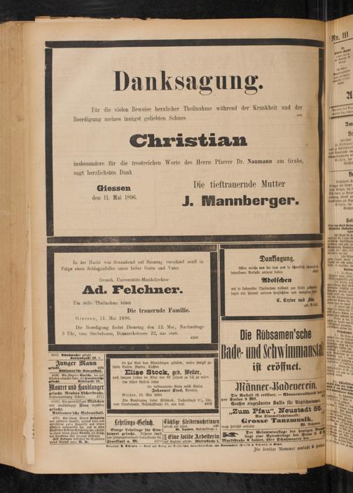Die Beerdigung findet Dienstag den 12. Mai, Nachmittags