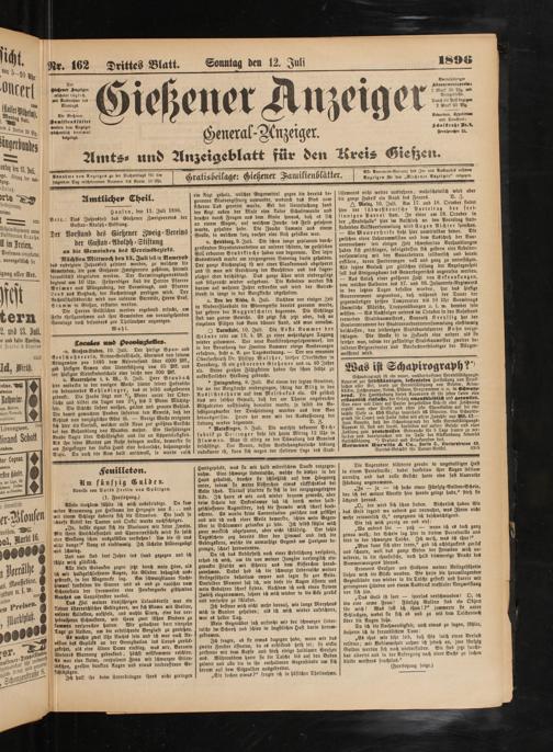 Die Gießener WamikienßlSIter »erden dem Anzeiger wöchentlich dreimal deigrlegt.