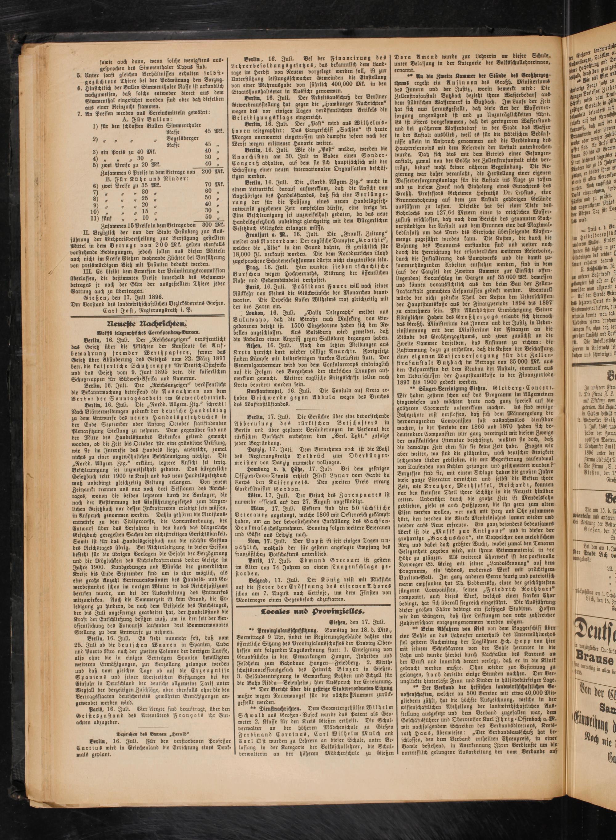 Gießen, den 17. Juli. Zuhörerfchaar entgegengenommen werden mögen.