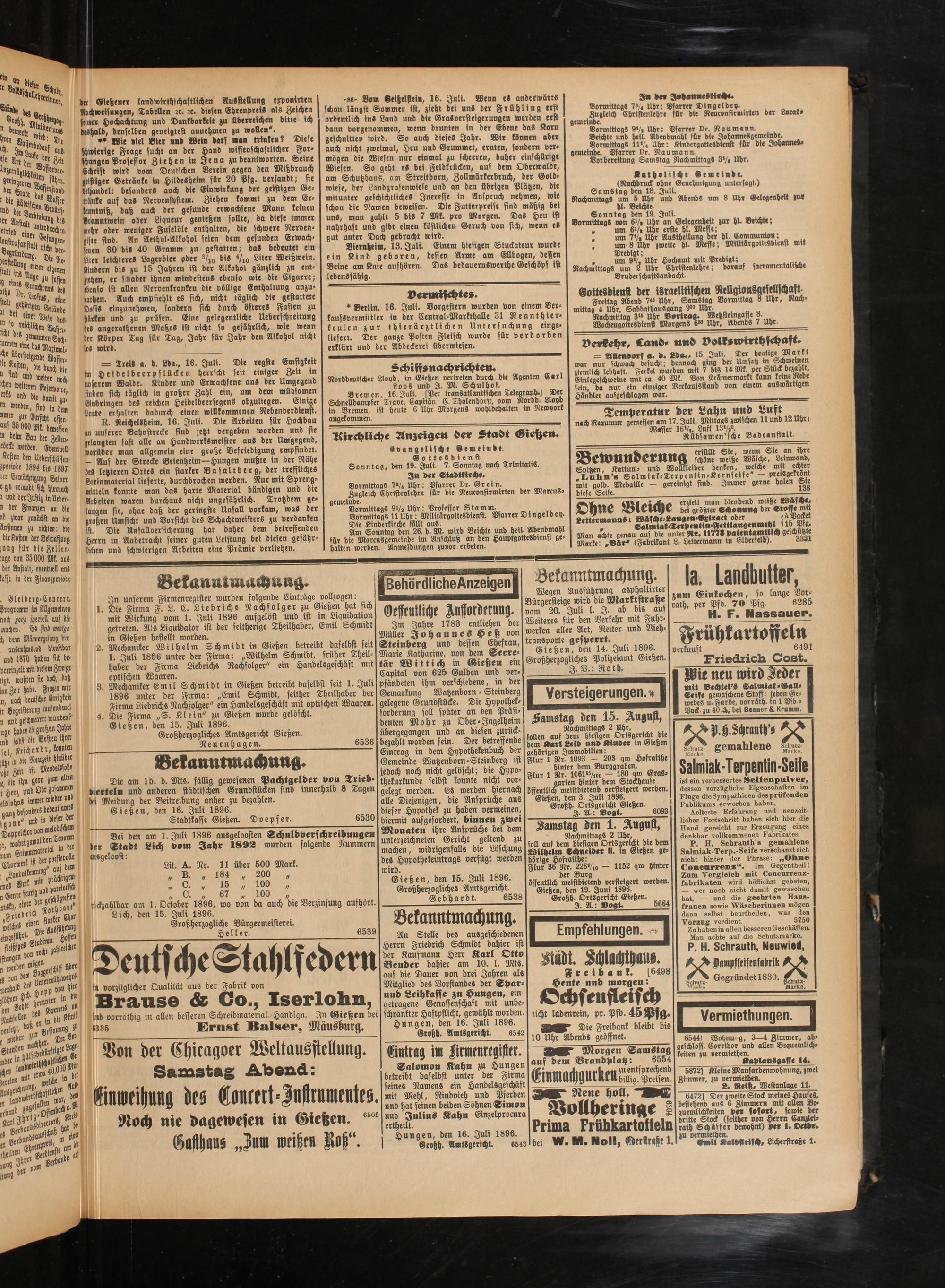 Hungen, den 16. Juli 1896.