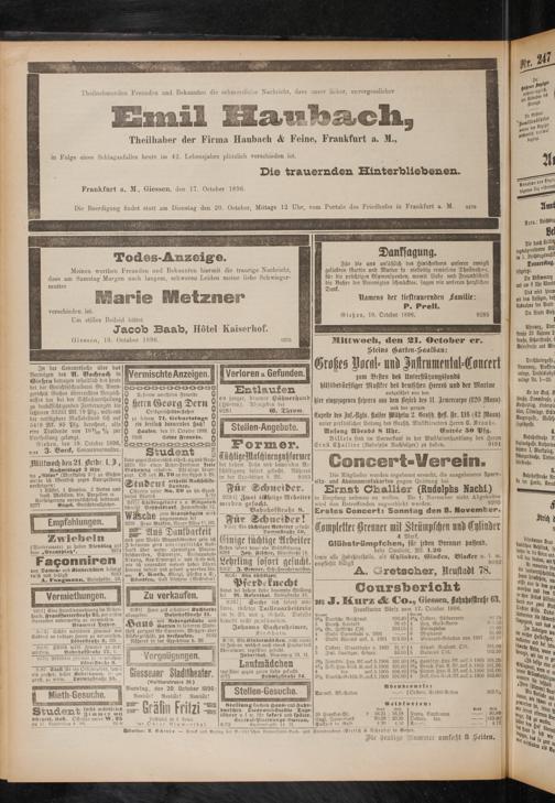 Die Beerdigung findet statt am Dienstag den 20. October, Mittags 12 Uhr, vom Portale des hriedhofes in Frankfurt a. M. 9279