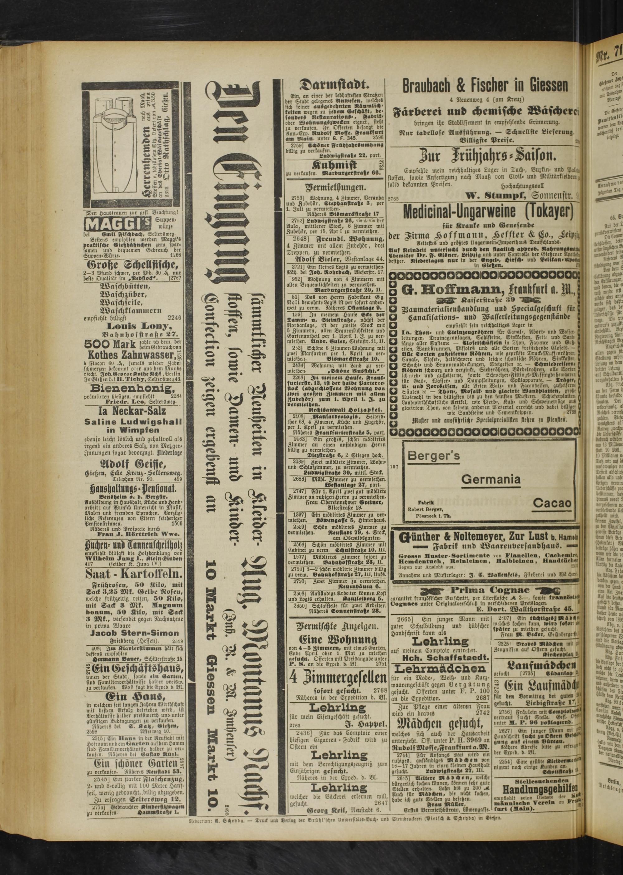 vermischte Anzeigen.