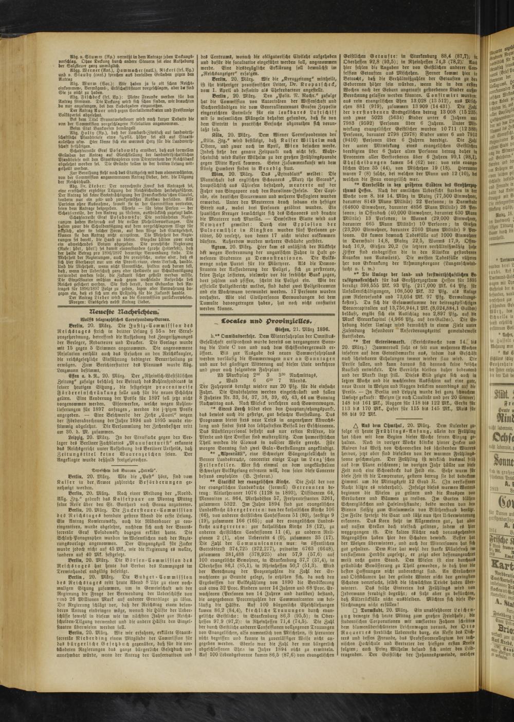 Berlin, 20. März. Die Justiz-Commission deS Reichstages strich tn dritter Lesung § 65 a der Strafprozeßordnung, betreffend die Aufhebung des ZeugnißzwangeS der Verleger, Redacteure und Drucker. Die Vorlage wurde mit 15 gegen 5 Stimmen angenommen. Die angenommene Resolution enthält auch das Ersuchen an den Reichskanzler, die reich-gesetzliche Einführung bedingter Berurtheilung zu erwägen. Zum Berichterstatter des Plenum- wurde Abg. Lenzmann bestimmt.