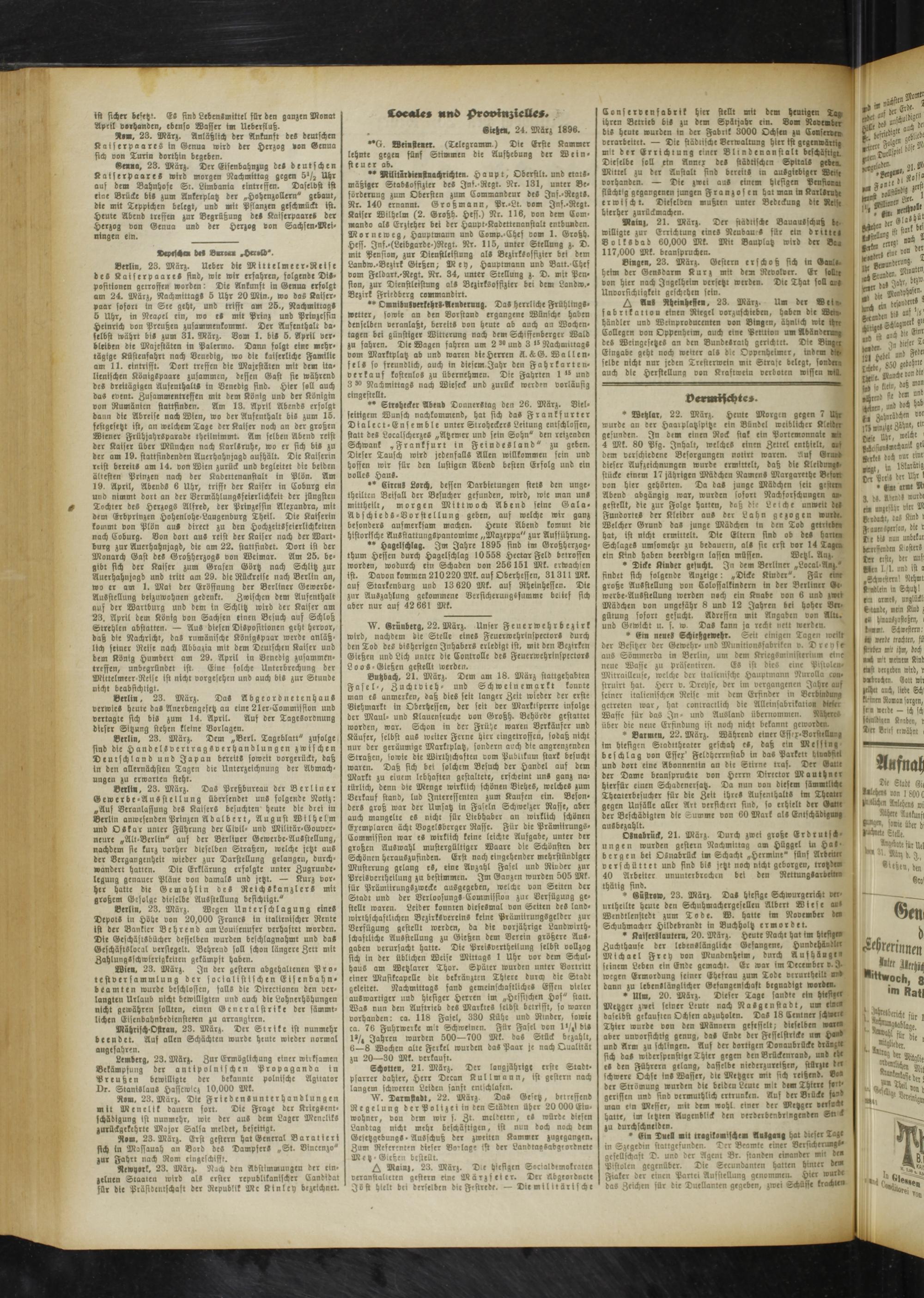 A Ma»nz, 23. März. Die hiesigen Svcialdrmokraten veranstalketen gestern eine Märzfeier. Der Abgeordnete Jöst hielt bei derselben die Festrede. — Diemilitärische